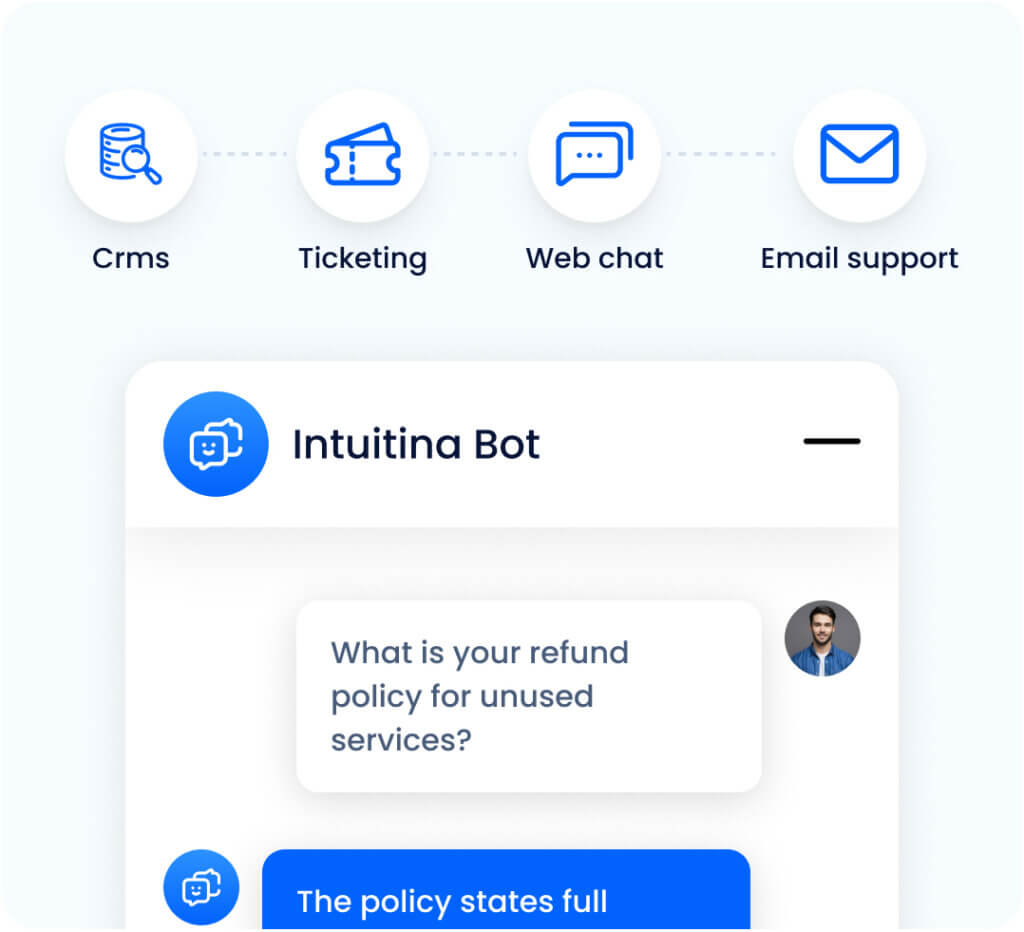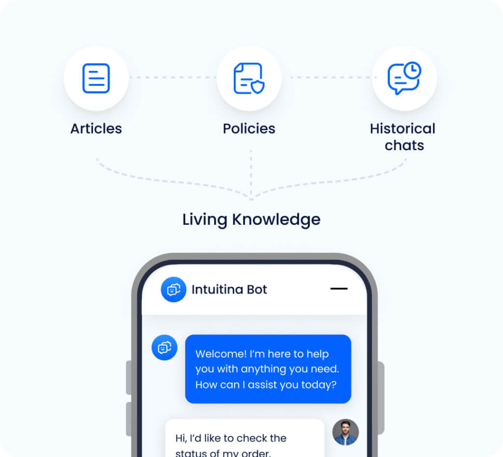 From first connection to continuous improvement, Intuitina transforms AI into a repeatable, results-driven process. Our chatbot development services streamline the journey from raw knowledge to reliable answers. The platform connects to your existing sources, shapes an assistant that reflects your brand, and builds a short feedback loop where small, safe updates deliver visible gains. Every step is transparent, auditable, and easy for non-technical teams to manage.